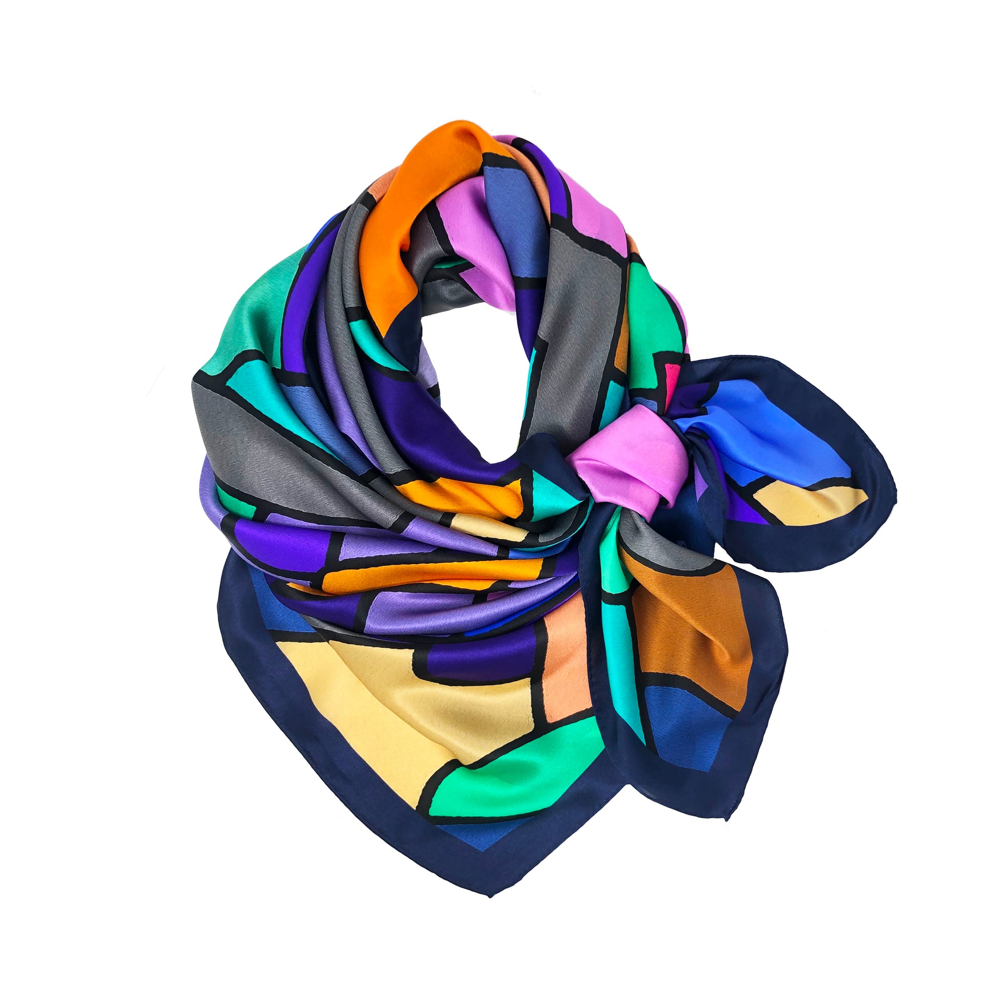 Celebrating a jubilation of colour, a myriad of tones are connected in an interlinked chain design that is bursting with sophistication and elegance. With so many colours to choose from, this scarf will literally suit every personality and match with any outfit. Our silks offer unrivalled creamy softness. Each scarf is enriched with vibrant colour, lifting your mood confidence and complexion.